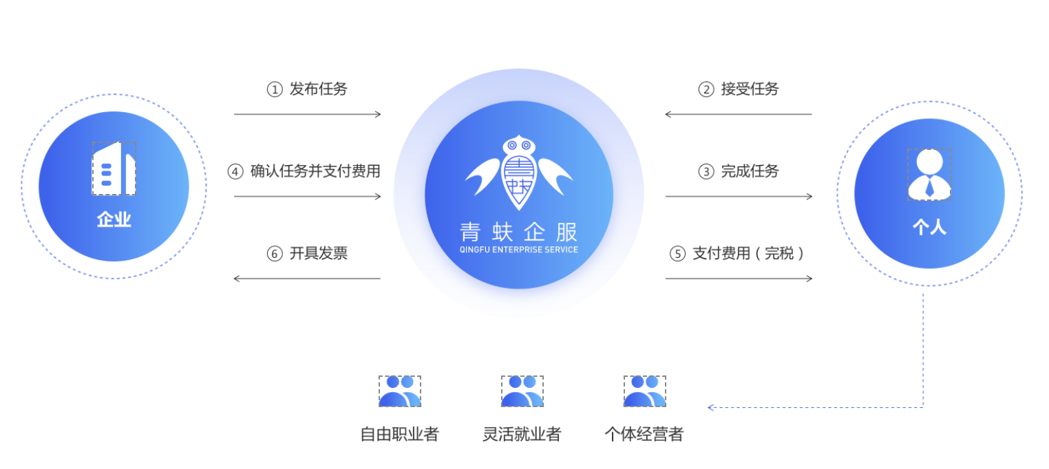 企业在给灵活就业人员进行费用结算时, 企业无法取得进项发票,灵活就业个人缴税及完税困难,神州通视可为灵活就业人员一键批量支付,并依法为个人报税及完税,并为企业真实业务合规开具增值税专用发票。